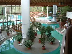 Der Badebereich mit Gastronomie wurde im Innenbereich von einem größeren Wellenbecken geprägt. In direkter Nachbarschaft befand sich ein Strömungskreis mit angeschlossener Felsengrotte. In der ersten Etage gab es einen Kinderbereich mit Wasserspielplatz, Piratenschiff und Schatzgrotte. Auf derselben Etage befanden sich drei Whirlpools. Eine Rutschenanlage, bestehend aus je einer sogenannten „Black Hole“- und „Blue Line“-Wasserrutsche, rundeten das Angebot ab. Der gesamte Innenbereich wurde mit künstlichen Felsen gestaltet. Im Außenbereich des Freizeitbades gab es neben einer Liegewiese und einigen Sitzgelegenheiten der Gastronomie ein Sole- und ein Kaltwasserbecken.