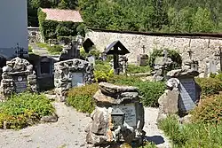 Der Dorffriedhof um die Pfarrkirche Heiliger Ägydius liegt gegenüber dem Kirchengrat auf dem Großen Ödstein, in einer der Pionierregionen des frühen Alpinismus. Eine seit dem Jahr 1810 geführte Verunglücktenliste enthält hunderte Namen. 1885 wurde neben Einheimischen auch der erste Bergtote bestattet. Bekanntester Toter ist der Maler Gustav Jahn.[1] An Fritz Kasparek erinnert eine Gedenktafel. 2010 wurde das 200-jährige Bestehen des Friedhofs begangen.