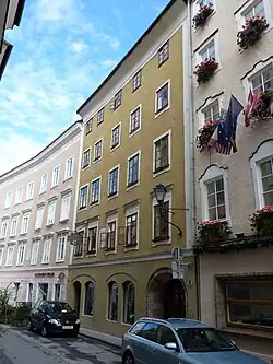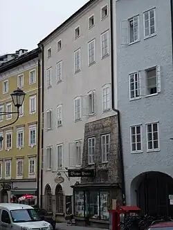 Das 1507 zuerst erwähnten Haus, damals im Eigentum von Örtl dem Färber, war 1650 im Eigentum des Spielgrafen Hanns Wilhelm. Der „Spielgraf“ stellte unter anderem die Erlaubnisscheine an die Landmusiken zur Mitgestaltung an Festen und Feiern aus. Bemerkenswert ist der Name des Gebäudes „Wasenbrennerhaus“ („Waßerbrennerhaus“). Er erinnert an die Zeit der Wasenstecherarbeit im nahen Schallmoos, die noch im 19. Jahrhundert weitum üblich war. Die getrockneten Moorwasen wurden damals als Brennmaterial vielfach verwendet.