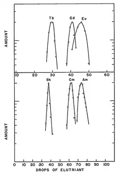 Die chromatographische Trennung konnte nur aufgrund vorheriger Vergleiche mit dem chemischen Verhalten der entsprechenden Lanthanoide gelingen. So tritt bei einer Trennung das Terbium vor Gadolinium und Europium aus einer Säule. Falls das chemische Verhalten des Berkeliums dem eines Eka-Terbiums ähnelt, sollte das fragliche Element 97 daher in dieser analogen Position zuerst erscheinen, entsprechend vor Curium und Americium.