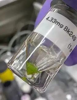 - ↑ J. R. Peterson, J. P. Young, D. D. Ensor, R. G. Haire: Absorption Spectrophotometric and X-Ray Diffraction Studies of the Trichlorides of Berkelium-249 and Californium-249, in: Inorg. Chem., 1986, 25 (21), S. 3779–3782 (doi:10.1021/ic00241a015).