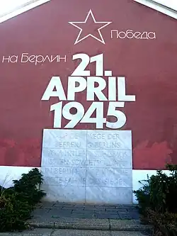 Im Kampf um Berlin überschritt die 5. Stoßarmee am 21. April 1945 als erste sowjetische Einheit in Marzahn die Stadtgrenze. Ihrem Befehlshaber, Generaloberst Nikolai Erastowitsch Bersarin, fiel damit nach russischer Militärtradition das Amt des Stadtkommandanten zu. An diesen Tag erinnert ein Giebelbild an der Landsberger Allee.
