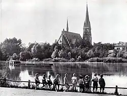 Die Wilhelmsaue mit der Auenkirche und dem Schoeler-Schlösschen ist der alte Ortskern der ehemaligen Landgemeinde Wilmersdorf.