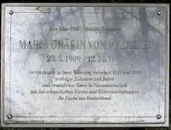 - Maria Gräfin von Maltzan (1909–1997), Tierärztin und Widerstandskämpferin gegen den Nationalsozialismus, versteckte in ihrer Wilmersdorfer Wohnung drei befreundete Juden vor der Gestapo, unterstützte Birger Forell bei der Fluchthilfe für jüdische Mitbürger, richtete im Hof ihres Wohnhauses eine Suppenküche für Zwangsarbeiter ein