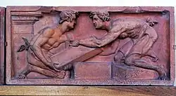 Einzelne Fassadenteile wurden für eine spätere Wiedererrichtung an anderer Stelle geborgen und auf dem Gelände Französische Straße/Ecke Kurstraße eingelagert.[24] Das linke Bronzeportal und mehrere Terrakottareliefs von beiden Portalen wurden 1969 in die Fassade der Gaststätte Schinkelklause am Kronprinzenpalais eingebaut.[25] Das rechte Bronzeportal wurde 1999 wiedergefunden und ins Depot des Landesdenkmalamts verbracht. Außerdem existieren insgesamt elf Kopien der Terrakottaplatten, die sich in der Toreinfahrt des Jugendkulturzentrums Mitte in der Weinmeisterstraße 15 befinden.[26] Die bestehenden Fundament- und Mauerteile sind als Bodendenkmal erfasst und nach Feststellung des Landesdenkmalamtes Berlin in gutem Zustand.[27]