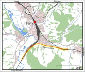 - ↑ a b An Bebra vorbei. Wiederinbetriebnahme der Berliner Kurve. Eisenbahn-Journal 7/1995, ISSN 0720-051X, S. 6–14.