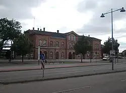 Das Empfangsgebäude aus der Eröffnungszeit des Bahnhofs war ein dreiteiliger klassizistischer Bau. Nach der Verlagerung des Bahnbetriebs zum heutigen Bahnhof wurde es als Hotel genutzt.