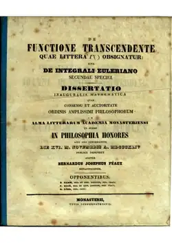 - De functione transcendente quae littera Γ() obsignatur: sive de integrali euleriano secundi speciei. 1844 (Wikimedia Commons).