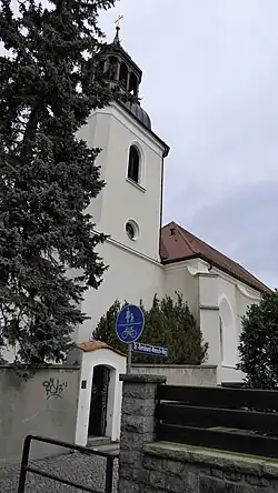 Pfarrkirche St. Maria Magdalena in Kamenz mit dem Dr.-Bernhard-Wensch-Weg entlang der Kirche