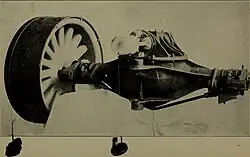 Der Motor war vorne angebracht.[1] Es gibt keinen Hinweis auf abweichende Daten in anderen Baujahren. Die Motorleistung wurde über eine Konuskupplung und ein manuell zu schaltendes Brown-Lipe Dreiganggetriebe mit Rückwärtsgang auf die Kardanwelle übertragen. Sie treibt über einen Schneckentrieb (“Worm gear”) die von Timken gelieferte Hinterachse an.