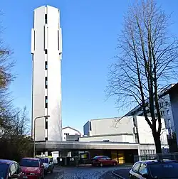 Die evangelische Bethlehemkirche im Frankfurter Stadtteil Ginnheim aus dem Jahr 1971 ergänzt die Alte Bethlehemkirche im Gemeindegebiet.