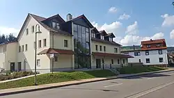 - In strategisch günstiger Lage auf der höchsten Stelle des Dorfes befindet sich die evangelische Wehrkirche Zum Heiligen Kreuz. Der mit einem Hocheingang geschützte mittelalterliche Wehrturm erhielt später einen Treppenaufgang angefügt. Von den Wehrbauten blieben auch Reste der Ringmauer mit Schießscharten und drei Gadengebäude erhalten. Das als Chorturmkirche im Jahr 1617 neu errichtete Gotteshaus besitzt einen Kanzel-Orgel-Altar im Stil der Rokokozeit. Die Emporenbrüstungen sind bemalt. Die Kirche wurde von 1995 bis 2000 mit Unterstützung der Deutschen Stiftung Denkmalschutz saniert.[5]