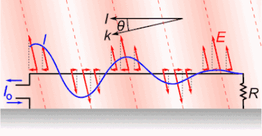 Durch die Art der elektrischen Kontaktierung verschiebt sich die symmetrische Strahlungscharakteristik des Dipols in Richtung des über den Widerstand geerdeten Antennenendes unter Verringerung der Rückwärtsstrahlung. Im Diagramm markiert die Pfeilspitze die geerdete Seite. Bei einer Länge, die fünf- bis zehnmal so groß ist wie die Wellenlänge, ist eine Rückwärtsdämpfung von etwa 10 dB erreichbar. Sie gehört damit zu den sogenannten „aperiodischen Antennen“ und befindet sich nicht in Resonanz mit der Betriebswellenlänge. Durch die einseitige Speisung ist die Antenne hochohmig und erfordert eine Impedanzanpassung beispielsweise in Form eines Antennentuners.