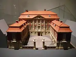 Ursprünglich stand an dieser Stelle der Davensberger Hof. Der Adelshof wurde von 1699 bis 1702 von Gottfried Laurenz Pictorius für Bernhard Engelbert Christian von Beverförde-Werries errichtet. Das Stadtpalais französischer Art hat einen hufeisenförmigen Grundriss, öffnet sich zur Straße und ist durch eine Mauer mit einem hohen Eisengitter abgesperrt. Der Mittelbau mit Backsteinmauerwerk erhebt sich in zwei Geschossen darüber. Ein flacher Mittelrisalit wird von vier ionischen Pilastern zusammengefasst und endet in einem flachen Dreiecksgiebel, der an der Stirnseite das mit der Freiherrenkrone gekrönte Wappen der Beverfoerde und Neuhoff trägt. Darunter der Wahlspruch der Beverfoerde, wie er auch auf dem Stammhaus Schloss Loburg zu sehen ist, lt. Ellipse: Deus Adiutor et Protector meus, d. h. Gott, mein Helfer und Schützer. Gesamtanlage, Bau- und Schmuckformen sind, französischen Regeln folgend, axialsymmetrisch ausgerichtet. Am 10. Oktober 1943 wurde das Gebäude bei einem Luftangriff schwer beschädigt und nach dem Krieg nur teilweise wiedererrichtet.