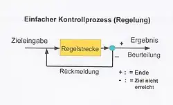 Bei einer Regelung (Kontrollprozess) wird ein Ziel für einen Prozess vorgegeben (input). Auf der sogenannten Regelstrecke soll durch vorgegebene oder konstruierte Abläufe dieses Ziel erarbeitet werden. Sind die Abläufe abgeschlossen, wird das Ergebnis (output) beurteilt (gemessen). Ist das Ziel erreicht, ist der Prozess abgeschlossen. Ist es nicht erreicht, kann durch Korrekturvorgaben und eine neue Eingabe an die Regelstrecke (veränderte Abläufe) der Versuch erfolgen, das Ziel in erneuten Ablauf zu erreichen. Dieser Kreislauf kann so lange wiederholt werden, bis das Ziel erreicht ist. Je früher in ihrem Ablauf eine Abweichung des geplanten Ablaufs entdeckt wird, desto größer ist die Chance, durch gezielte Korrekturmaßnahmen das Ziel dennoch sicher und in der geplanten Zeit zu erreichen. Für all diese Abläufe ist es wichtig, dass die notwendigen Informationen – über Ziel, aktuelle Zustände, Teilergebnisse – bereitgestellt und zur richtigen Zeit an den richtigen Orten zur Verfügung stehen. Insofern hat Bewegungskontrolle sehr viel mit Informationsaufnahme und Informationsverarbeitung im menschlichen Organismus zu tun. Diese Aufgaben werden durch das Nervensystem erfüllt.