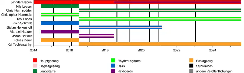 Gegründet wurde die Band 2014 in Mannheim.[1] Sie bestand anfangs aus Sängerin Jennifer Haben, den beiden Gitarristen Christopher Hummels und Nils Lesser, Keyboarder Michael Hauser, Bassist Erwin Schmidt und Schlagzeuger Tobias Derer. Bis auf Jennifer Haben und Christopher Hummels haben alle Musiker an der Popakademie Baden-Württemberg studiert.[2] Ihre ersten Live-Auftritte hatte das Sextett auf dem Wacken Open Air 2014,[3] nachdem die Organisatoren des Musikfestivals einige Demoaufnahmen der Band gehört hatten.[3] Es folgten Auftritte auf dem Hamburg-Metal-Dayz-Festival (November 2014) sowie als Vorband für Saxon in Großbritannien (Februar 2015).[4]