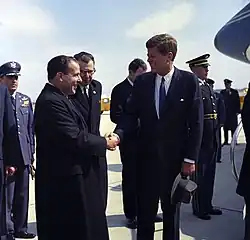 1956 übernahm Juscelino Kubitschek das Amt, der bis 1961 regierte. Wie Vargas verfolgte auch Kubitschek eine industriefreundliche Wirtschaftspolitik. Doch im Gegensatz zu Vargas war Kubitschek offen für Investitionen durch ausländisches Kapital. Er unterhielt gute Beziehungen zu den USA und zu Europa und im Rahmen der Allianz für den Fortschritt leisteten die Amerikaner unter John F. Kennedy Entwicklungshilfe im Rahmen von Kubitscheks Entwicklungsplan. Nach dem Amtsantritt von Präsident Jânio Quadros kühlten sich die Beziehungen wieder ab. Obwohl er ein konservativer Politiker war, versuchte er, engere Beziehungen zu einigen kommunistischen Ländern zu knüpfen. Dazu gehörte auch Kuba. Quadros unterstützte Fidel Castro offen während der von den USA angeführten Invasion in der Schweinebucht. Unter seinem Vizepräsidenten und späteren Nachfolger João Goulart wurde diese Außenpolitik weitergeführt. Er betrieb auch eine gewerkschaftsfreundliche Politik und erhöhte den Mindestlohn, was den USA missfiel, welche die Entwicklungshilfe kürzten. Am 31. März 1964 kam es in Brasilien zu einem Militärputsch, indem Goulart gestürzt wurde. Ein US-freundliches Regime ersetzte ihn und etablierte eine langjährige Militärdiktatur. Obwohl die US-Regierung dies nie zugegeben hat, haben die USA die Militärputschisten unterstützt und insgeheim mit Waffen versorgt, was durch später freigegebene Dokumente belegt werden konnte. Präsident Lyndon B. Johnson gab die Anweisung zur Durchführung von Plänen, die schon unter seinem Amtsvorgänger John F. Kennedy ausgearbeitet wurden.[6][7] Der US-Botschafter Lincoln Gordon war ein großer Unterstützer des Putsches und nahm über die CIA Kontakt zu den Putschisten auf.[8] US-Justizminister Robert F. Kennedy, ein weiterer Mitarbeiter der Kennedy-Regierung und Bruder des verstorbenen Präsidenten, war ebenfalls begeistert von dem Staatsstreich. Ein Tonband, das zum 50. Jahrestag des Staatsstreichs im Jahr 2014 veröffentlicht wurde, enthüllte, dass Robert Kennedy Goulart als „gerissenen“ Politiker bezeichnete, der „denkt, dass er uns am Arsch hat“.[6]