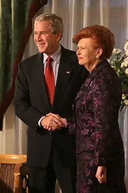 - ↑ Statement by the Press Secretary: President to Travel to Latvia, the Netherlands, Russia, and Georgia May 2005 | The American Presidency Project. Abgerufen am 4. August 2025.