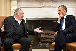 Die USA erkannten nach Uruguays Unabhängigkeit von Spanien 1828 Uruguay erstmals 1867 diplomatisch an und nahmen daraufhin offizielle Beziehungen auf.[1] 1949 unterzeichneten beide Staaten den ersten modernen Vertrag über Freundschaft, Handel und wirtschaftliche Entwicklung Lateinamerikas.[2] Während des Kalten Krieges unterstützten die USA und ihre Geheimdienste die Militärdiktatur in Uruguay (1973–1985), darunter über das Office of Public Safety: Der US-Berater Dan Mitrione vermittelte u. a. Polizeitaktiken auch mit Foltertraining, was bis heute kontrovers diskutiert wird.[3][4] Nach der Rückkehr zur Demokratie intensivierte Uruguay ab den 1990er-Jahren seine Kooperation mit den USA, z. B. über die gemeinsame Handels‑ und Investitionskommission (JCTI) ab 2002 sowie unter Präsident Tabaré Vázquez (2005–2010, 2015–2020), der gelegentlich abweichende Positionen gegenüber Washington vertrat, z. B. in regionalen Fragen, ähnlich wie José Mujica (2010–2015). Seit der Amtsübernahme von Präsident Luis Lacalle Pou im Jahr 2020 haben sich die Beziehungen erneut vertieft.[5]