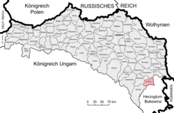 Er grenzte im Norden an den Bezirk Horodenka, im Osten und Süden an das österreichische Kronland Bukowina, im Südwesten an den Bezirk Kosów sowie im Nordwesten an den Bezirk Kolomea.
