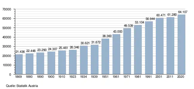 - ↑ Statistik Austria – Bevölkerung zu Jahresbeginn nach administrativen Gebietseinheiten (Bundesländer, NUTS-Regionen, Bezirke, Gemeinden) seit 2002 (ODS)