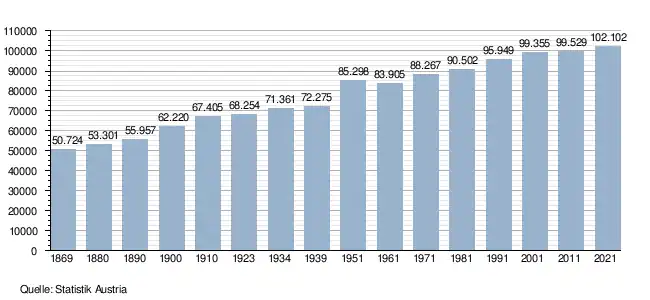 - ↑ Statistik Austria – Bevölkerung zu Jahresbeginn nach administrativen Gebietseinheiten (Bundesländer, NUTS-Regionen, Bezirke, Gemeinden) seit 2002 (ODS)