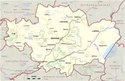 Die Bezirksgemeinde umfasst die 4 Städte (pilsētas) Cesvaine, Lubāna, Madona und Varakļāni sowie 21 Gemeinden (pagasti):[2]