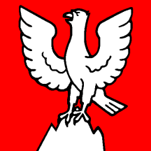 - In Rot auf silbernem zackigem Dreiberg silberner, rechtsblickender Falke mit gespreiteten Flügeln