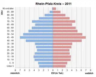 Bevölkerungspyramide für den Kreis Rhein-Pfalz-Kreis (Datenquelle: Zensus 2011)[6]