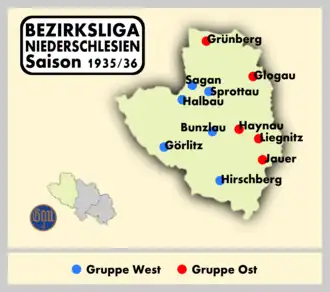 Die Bezirksliga Niederschlesien war in dieser Saison erneut in zwei Gruppen eingeteilt, deren Sieger in zwei Finalspielen den Bezirksmeister ausspielten. Am Ende sicherte sich der MSV Cherusker Görlitz die Bezirksmeisterschaft und nahm dadurch an der Aufstiegsrunde zur Gauliga Schlesien 1936/37 teil. Bei dieser konnte sich die Görlitzer jedoch nicht gegen den Reichsbahn-SV Gleiwitz und den SC Hertha Breslau durchsetzten und verpassten den Aufstieg.
