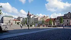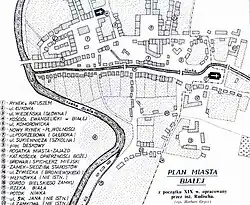 Die Mehrheit der alten Stadt liegt innerhalb des heutigen Stadtteils Biała Wschód (Biała-Ost), den Namen Biała tragen auch die Stadtteile Biała Śródmieście (Biała-Innenstadt; mit dem Rathaus), Biała Krakowska und Biała Północ (Biala-Nord).[1]