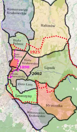 Im Jahre 1900 hatte die Stadt Biala (mit der Vorstadt Biała) eine Fläche von 50 Hektar,[2] nach der Eingemeindung von Lipnik mit der Ortschaft Leszczyny im Jahr 1925 2125 Hektar.[3]