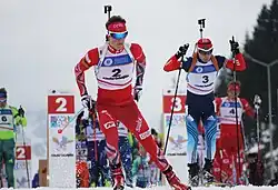 Endre Strømsheim und Wjatscheslaw Malejew im Juniorenverfolgungsrennen