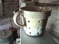 Käsnapf zur Herstellung von Bibbeliskäs, ausgestellt im Schwarzwälder Freilichtmuseum Vogtsbauernhof