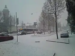 1889 wurde die erste Dampfstraßenbahn der Wiesbadener Straßenbahn über die Biebricher Allee zum Rheinufer eingerichtet, die 1900 in eine elektrische Straßenbahn umgewandelt wurde. Ab ca. 1897 entstanden die Villengegend Adolfshöhe und das Waldstraßengebiet als neue Stadtteile, womit Wiesbaden und Biebrich baulich verbunden wurden. Hierbei wurde auch der Biebricher Wasserturm errichtet. 1907 wurde der Bahnhof Landesdenkmal an der Unterführung der Aartalbahn unter der Biebricher Allee in Betrieb genommen, der direkt am allerdings erst 1909 eingeweihten Landesdenkmal zu Ehren Adolph I. lag. Dieses ist von den Richard-Wagner-Anlagen umgeben.[7] Ebenfalls 1909 siedelte sich die Sektkellerei Henkell[8] unmittelbar gegenüber an, die auch einen Gleisanschluss erhielt.[4] Der Erste Weltkrieg beendete die rege Bautätigkeit entlang der Biebricher Allee. Am 1. Oktober 1926 wurde Biebrich eingemeindet. Ende 1929 wurde ein Areal an der Allee an die Gemeinnützige Aktiengesellschaft für Angestelltenheimstätten (Gagfah) vergeben, die kleinere Eigenheime errichtete. Bedingt durch den Zweiten Weltkrieg wurde der Straßenbahnverkehr Anfang 1945 eingestellt und anschließend nicht wieder aufgenommen. Relikte der Gleise befinden sich noch unter dem Asphalt der Biebricher Allee. Ab 1949 übernahm die Linie A des Oberleitungsbus Wiesbaden den Personenverkehr auf der Strecke,[9] seit 1961 sind nur noch Dieselbusse im Einsatz, die zum Großteil von der ESWE betrieben werden.