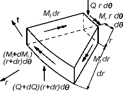 Mit dem tangentialen und radialen Biegemoment und und unter Vernachlässigung von Differentialen höherer Ordnung ergibt sich die Momentgleichung