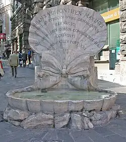 1. Cesare d’Onofrio: Il Facchino di via Lata ed altre fontane minori con acqua di Trevi. Romana Società Editrice 1991, S. 61.
