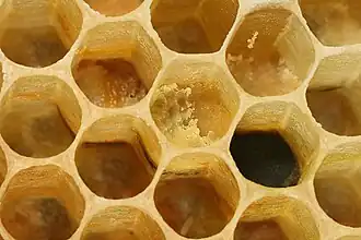 Eine Bienenwabe ist ein von den Honigbienen aus Bienenwachs errichtetes Wabengebilde mit sechseckigen Zellen. Sie dienen zur Aufzucht von Larven und zur Lagerung von Honig und Pollen. Das Wachs der Wabe produzieren die Bienen mit den Wachsdrüsen ihres Körpers.