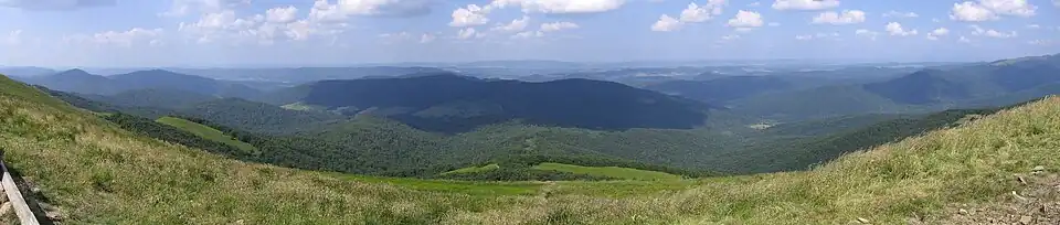 Eine Besonderheit der Bieszczady sind die Poloninen. Damit bezeichnet man die unbewaldeten Kammlagen der Höhenzüge, die hauptsächlich mit Gräsern bewachsen sind. Einige Poloninen wurden früher als Hochweide genutzt.[4]