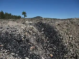 Der effusiven Phase war eine explosive Phase vorausgegangen, die rund 320 Quadratkilometer mit rhyolithischer Tephra (mit einem SiO2-Gehalt von 73,8 bis 74,2 Gewichtsprozent) bedeckte.[2]