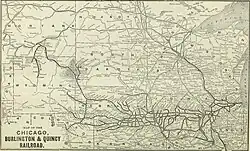 - ↑ a b c d e Gregory Nickerson: The Burlington Route: Wyoming’s Second Transcontinental Railroad. In: WyoHistory.org. Wyoming Historical Society, 8. November 2012, abgerufen am 28. November 2024 (englisch).