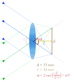 Um ein Objekt auf dem Aufnahmemedium vollständig abbilden zu können, darf der horizontale und vertikale Bildwinkel nicht kleiner sein als der entsprechende Sehwinkel, es muss also gelten:
