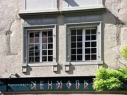 ![Mauerdetails, in der Bildmitte rechts das Wohnhaus Bruns. An der heutigen Froschau-/ Synagogengasse 4 war die mittelalterliche Synagoge beheimatet.[12]](./Z%C3%BCrich_-_Neumarkt_-_Bilgeriturm_IMG_1330.jpg)