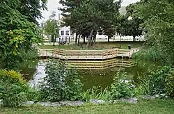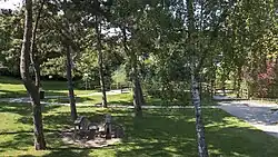 - Schwarzkiefer (Pinus nigra), Nadelbaumgruppe im Zentrum des Parks