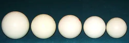Eine letzte große Änderung bezüglich des Materials setzte sich im ausgehenden 19. Jahrhundert durch, indem das vorher verwendete Elfenbein der Bälle durch Kunstharze ersetzt wurde. Mit Ausnahme der Disziplin Billard Artistique werden heute für Billard ausschließlich Bälle aus hochwertigen Phenolharzen verwendet.
