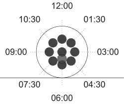 Treffpunkt: oberhalb der Mitte. Die weiße Kugel wird, nachdem sie eine andere Kugel zentral getroffen hat, dieser nachlaufen. Daher heißt dieser Stoß Nachläufer oder auch Laufball.