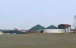 Das erste Bioenergiedorf in Deutschland war Jühnde (1089 Einwohner) im Landkreis Göttingen. In einem Projekt des Interdisziplinären Zentrums für Nachhaltige Entwicklung (IZNE) der Universität Göttingen konnte das Ziel, den kompletten Energiebedarf durch regenerative Energieträger zu decken, im Januar 2006 erfolgreich umgesetzt werden. Neben der Deckung des Wärmebedarfs der Haushalte erzeugt der Ort deutlich mehr Strom, als er selbst verbraucht.[30] Eine Biogasanlage mit 700 kWel erzeugt jährlich etwa 5 Mio. kWh Strom und damit mehr als das Doppelte des Bedarfs in Jühnde. Ein mit Holzhackschnitzeln betriebenes Holzheizwerk kann 550 kWth und ein Spitzenlast-Ölkessel 1,6 MWth bereitstellen. Insgesamt werden etwa 3,2 Mio kWh Wärme pro Jahr abgesetzt. Die Biogasanlage benötigt als Substrat jährlich 9000 m3 Gülle und 15.000 t Biomasse, die auf 320 ha Fläche erzeugt werden. Etwa 1000 Schüttraummeter Holzhackschnitzel werden jährlich verbrannt.[1][31]