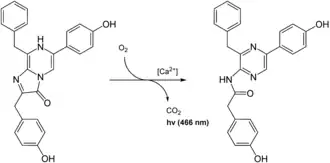 Eine häufig zur Biolumineszenz genutzte chemische Reaktion ist die exergone Oxidation von Luciferinen wie D-Luciferin mit molekularem Sauerstoff (O2), katalysiert durch Enzyme der Luciferasen. Dabei entstehen Dioxetane bzw. Dioxetanone, die unter Abgabe von Kohlenstoffdioxid zerfallen und die gespeicherte Energie in Form von Licht freisetzen.