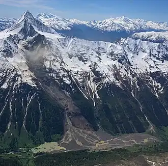 Durch das Tobel des Birchbachs erreichten in der Vergangenheit immer wieder Eis- und Schneelawinen den Talboden bei Blatten,[1] wo ein um 1990 gebauter Schutzdamm die Ortschaft vor den Sturzmassen schützen sollte.
