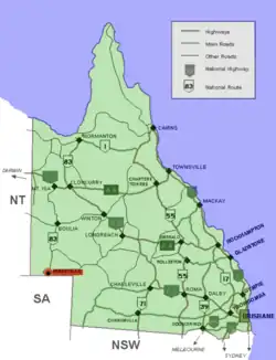 Birdsville gilt als klassischer Outback-Ort. Die nächste größere Stadt ist das 670 km entfernte, für seinen Bergbau bekannte Mount Isa, welches rund 18.000 Einwohner zählt.[3] Zur Landeshauptstadt Brisbane beträgt die Entfernung knapp 1600 km. Birdsville stellt den nördlichen Endpunkt des Birdsville Tracks dar, einer unbefestigten Straße, an deren anderen Ende rund 500 km entfernt die südaustralische Ortschaft Marree liegt. Von dort nach Adelaide sind es dann noch weitere 700 km. Unbefestigte Fernstraßen führen auch an die Nord- und Ostküste.